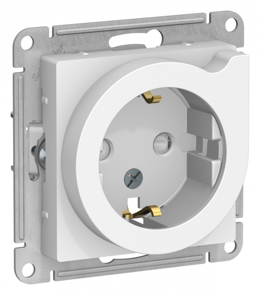 Механизм Systeme Electric (ранее Schneider Electric) серии AtlasDesign в цвете белый розетки одинарной с заземлением, шторками с выталкивателем подходит для сетей 250 В, на ток 16 А. Пластик с ионами серебра в белом цвете обеспечивает антибактериальный эффект. Заземляющий контакт обеспечивает дополнительную защиту от удара электрическим током. Оснащена специальным механизмом: рычаг при повороте выталкивает вилку из розетки, что особенно удобно при частом подключении к розетке массивных вилок от бытовых приборов.