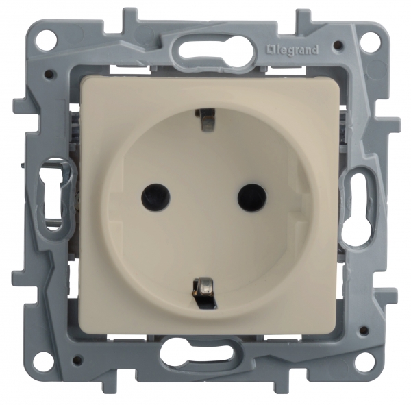 Розетка с заземлением Legrand Etika для скрытого монтажа, цвет слоновая кость. Максимальный ток 16 А, максимальная мощность 3680 Вт. Применяется в зданиях, оборудованных для повышения безопасности проводкой с заземлением (с защитным проводником).Особенности: