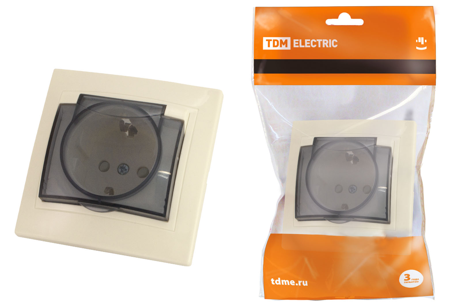 Розетка 1-местная со шторками и крышкой 16А 250В IP42 слоновая кость TDM Таймыр