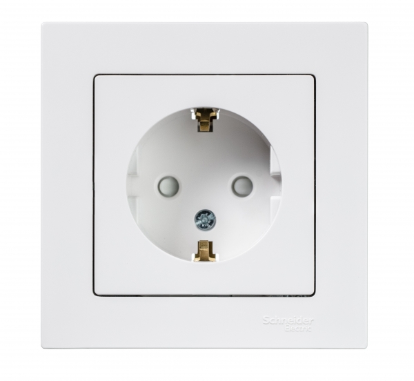 Розетка в сборе Systeme Electric (ранее Schneider Electric) серии AtlasDesign в цвете белый одинарная с заземлением и со шторками подходит для сетей 250 В, на ток 16 А. Пластик с ионами серебра в белом цвете обеспечивает антибактериальный эффект. Заземляющий контакт обеспечивает дополнительную защиту от удара электрическим током. Лицевые детали из качественного ABS-пластика, устойчивого к царапинам и УФ-излучению. Изделие поставляется в комплекте с рамкой того же цвета.