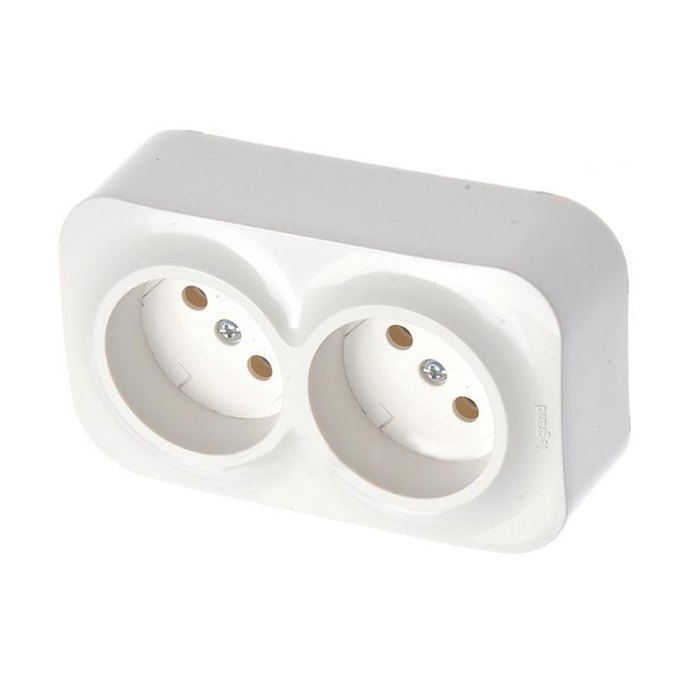Розеточный блок двойной без заземления - Legrand Quteo - с предварительным подключением без шторок IP20 16А 250В винтовые зажимы накладной монтаж - белый