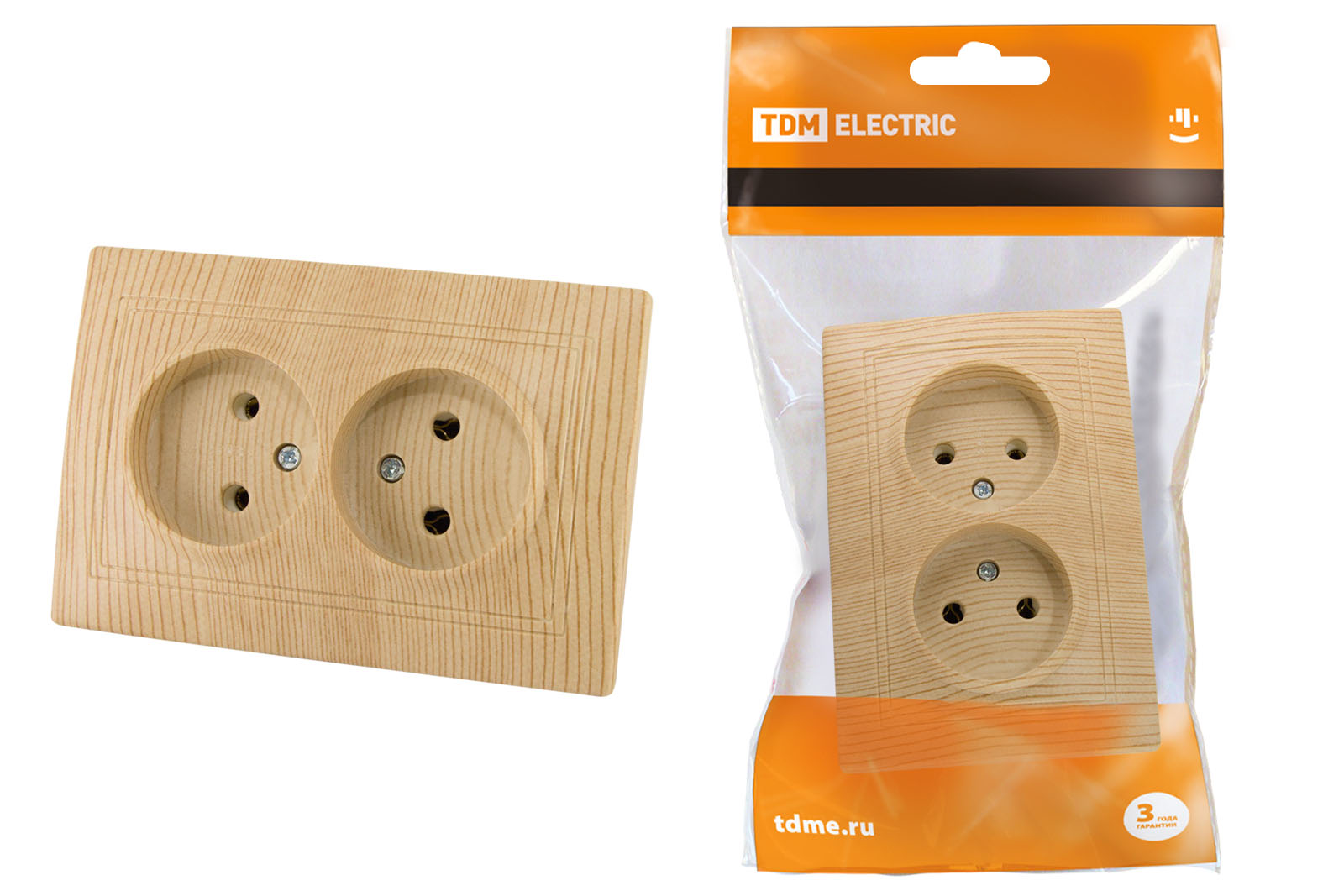 Розетка 2-местная 10А 50-230В IP20 в сборе с корпусом открытая установка деревоTDM Таймыр