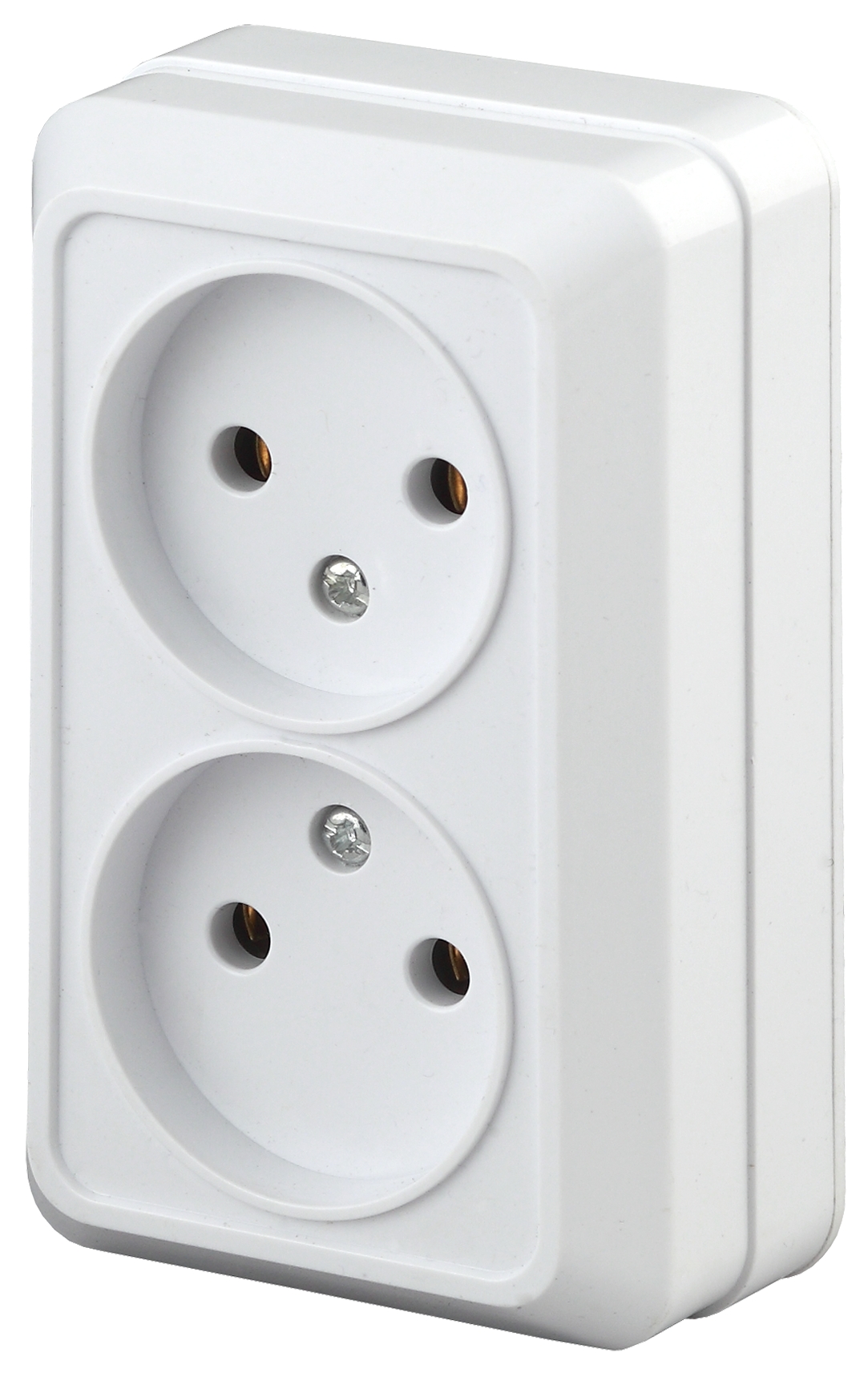 Розетка двойная 2-я серии Intro Quadro открытой установки цвет белый 2-203-01. Номинальные характеристики 16А 250В. Розетка выполнена из керамики, стали и латуни, оснащёна винтовыми зажимами.