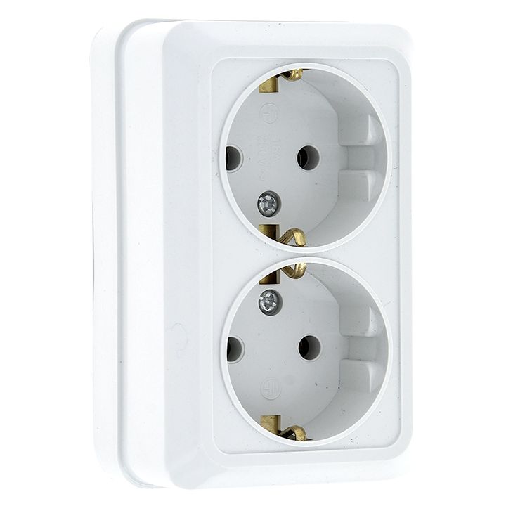 Розетка 2-местная 16А с/з керамическая белая EKF Рим