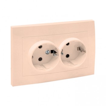 Розетка 2-местная 16А с/з с защитной шторкой Кремовая 16А EKF PROxima Валенсия