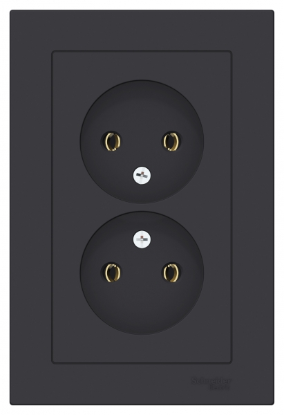 Розетка двойная в сборе Systeme Electric (ранее Schneider Electric) серии AtlasDesign в цвете карбон без заземления и без шторок подходит для сетей 250 В, на ток 16 А. Лицевые детали из качественного ABS-пластика, устойчивого к царапинам и УФ-излучению. Двойная розетка позволяет подключить два устройства в одном месте. Изделие поставляется в комплекте с рамкой того же цвета. Благодаря покрытию «soft touch» к изделию приятно прикасаться.