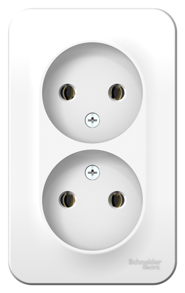Розетка Systeme Electric (ранее Schneider Electric) BLANCA (белый, открытой установки) двухместная, без шторок и заземления, с изолирующей пластиной предназначена для сетей до 250В, на ток до 16А. Двухместная розетка позволяет подключить два устройства в одном месте. Она изготовлена из ABS-пластика, проста в установке и удобна в применении.