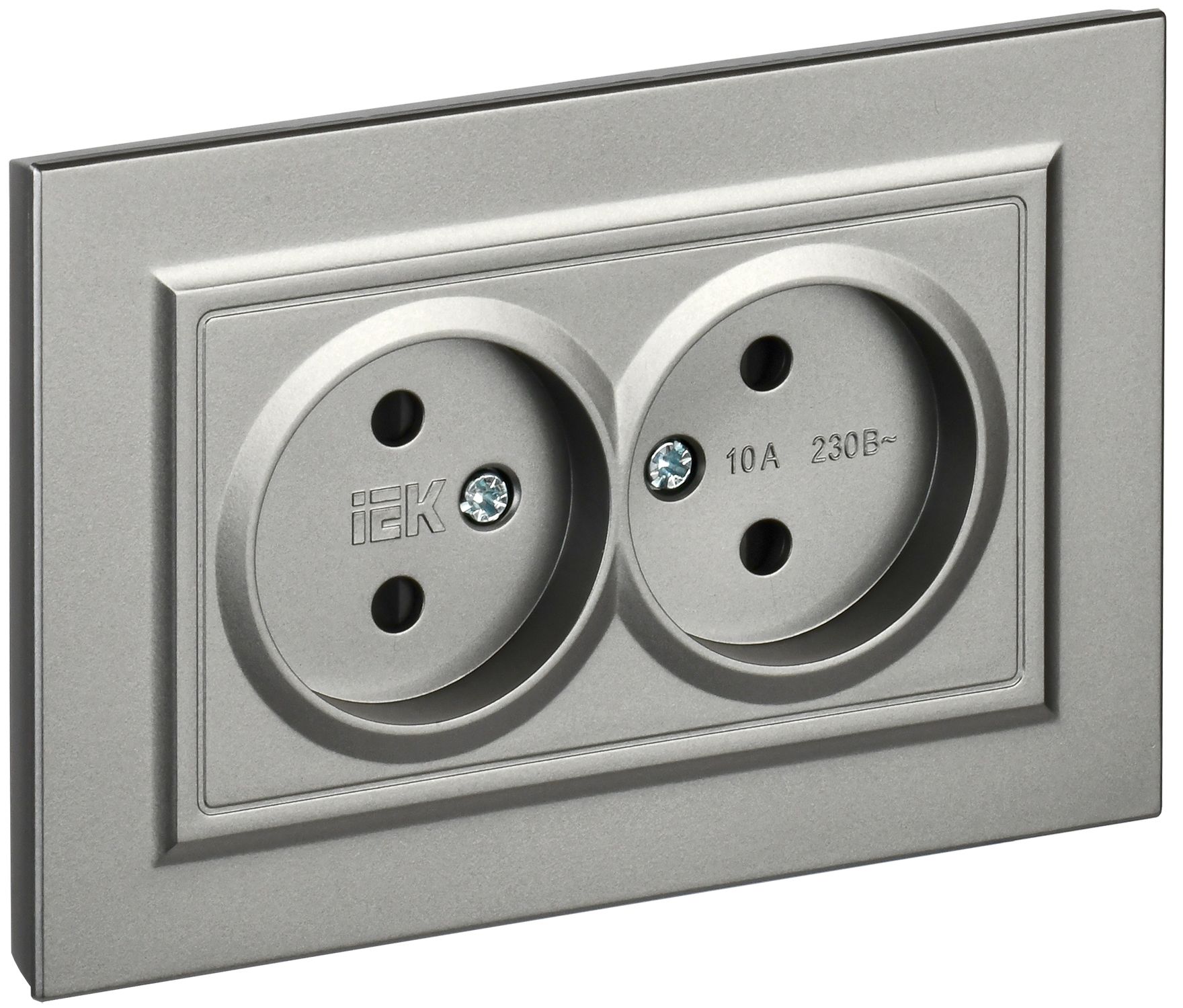 Розетка 2-местная без заземления с защитными шторками 10А в сборе сталь IEK BRITE 1/100