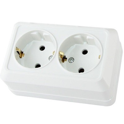 Розетка 2-местная IP20 16А 250В (керамика) открытая установка белая TDM Ладога