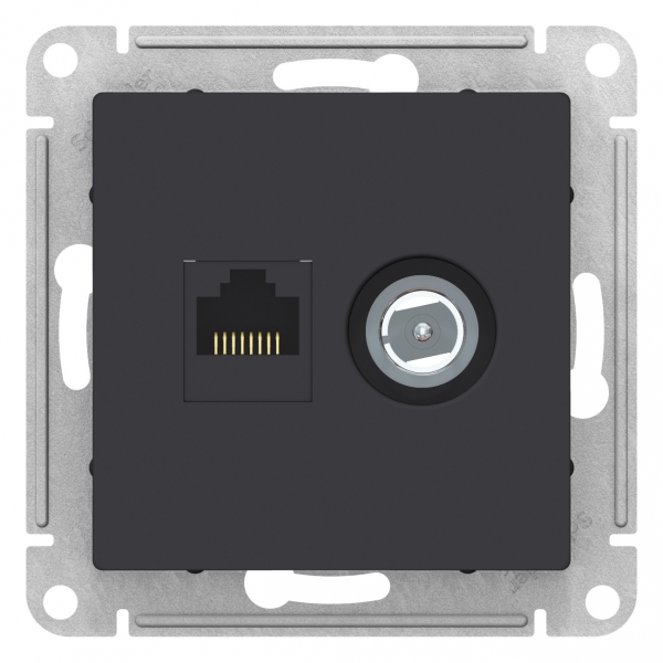 Механизм Systeme Electric (ранее Schneider Electric) серии AtlasDesign в цвете карбон двойной розетки разъёмами RJ45 категории 5е и TV предназначен для удобного и быстрого подключения вашего компьютера и телевизора к соответствующим сетям. Лицевые детали из качественного ABS-пластика, устойчивого к царапинам и УФ-излучению. Благодаря покрытию «soft touch» к изделию приятно прикасаться. Усиленные прямые монтажные лапки для лучшей фиксации механизма в монтажной коробке.