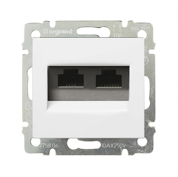 Розетка компьютерная двойная RJ45 категория 5e UTP - Legrand Valena - с захватами - белый