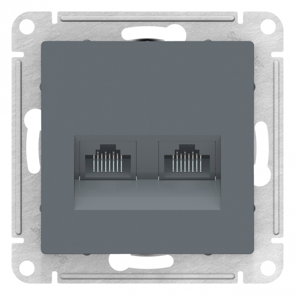 Механизм Systeme Electric (ранее Schneider Electric) серии AtlasDesign в цвете грифель двойной розетки компьютерной с разъёмом RJ45 категории 5е предназначен для удобного и быстрого подключения вашего компьютера к локальной вычислительной сети. Лицевые детали из качественного ABS-пластика, устойчивого к царапинам и УФ-излучению. Усиленные прямые монтажные лапки для лучшей фиксации механизма в монтажной коробке.