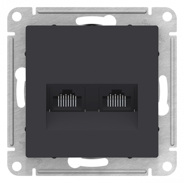 Механизм Systeme Electric (ранее Schneider Electric) серии AtlasDesign в цвете карбон двойной розетки компьютерной с разъёмом RJ45 категории 5е предназначен для удобного и быстрого подключения вашего компьютера к локальной вычислительной сети. Лицевые детали из качественного ABS-пластика, устойчивого к царапинам и УФ-излучению. Благодаря покрытию «soft touch» к изделию приятно прикасаться. Усиленные прямые монтажные лапки для лучшей фиксации механизма в монтажной коробке. (ранее Schneider Electric ЭУИ UNICA, ЭУИ UNICA NEW MGU5.2020.12ZD, NU542054)