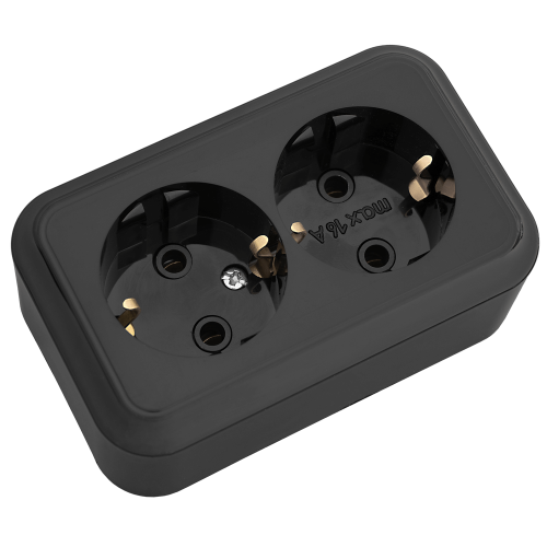 Розетка 2-местная с/з открытая установка черный РА16-261 ПРАЛЕСКА 8/32