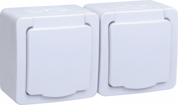 Розетка 2-местная с крышками IP54 открытая установка белый IEK ГЕРМЕС PLUS 1/50