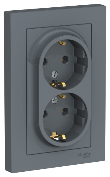 Розетка двойная в сборе Systeme Electric (ранее Schneider Electric) серии AtlasDesign в цвете грифель с заземлением, без шторок подходит для сетей 250 В, на ток 16 А. Заземляющий контакт обеспечивает дополнительную защиту от удара электрическим током. Лицевые детали из качественного ABS-пластика, устойчивого к царапинам и УФ-излучению. Двойная розетка позволяет подключить два устройства в одном месте. Изделие поставляется в комплекте с рамкой того же цвета.