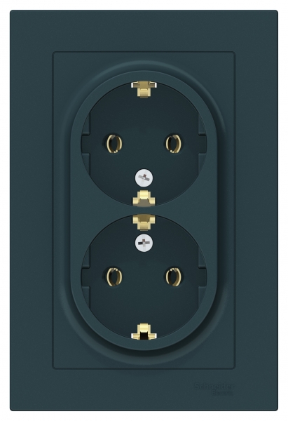 Розетка двойная в сборе Systeme Electric (ранее Schneider Electric) серии AtlasDesign в цвете изумруд с заземлением, без шторок подходит для сетей 250 В, на ток 16 А. Заземляющий контакт обеспечивает дополнительную защиту от удара электрическим током. Лицевые детали из качественного ABS-пластика, устойчивого к царапинам и УФ-излучению. Двойная розетка позволяет подключить два устройства в одном месте. Изделие поставляется в комплекте с рамкой того же цвета.