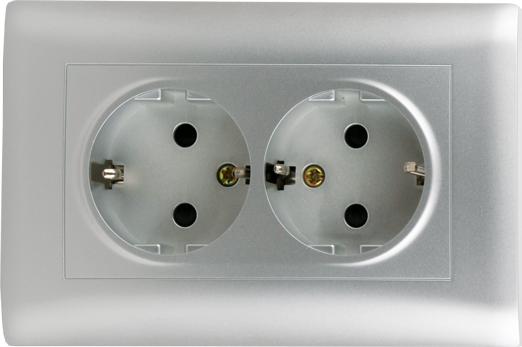 Розетка 2-местная с/з Argento(серебро) в сборе Volsten V01-15-R24-S Magenta ) 10/120
