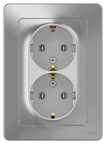 Розетка Systeme Electric (ранее Schneider Electric) BLANCA (алюминий, скрытой установки) двухместная, с заземлением, без шторок предназначена для сетей до 250В, на ток до 16А. Двухместная розетка позволяет подключить два устройства в одном месте. Заземление обеспечивает безопасность при косвенном прикосновении. Она изготовлена из ABS-пластика, проста в установке и удобна в применении.