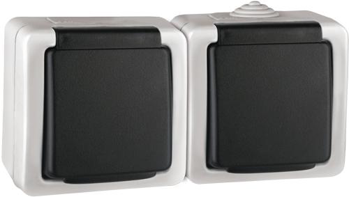 Розетка 2-местная с/з и крышкой IP54 серый Volsten V01-43-R28-S Marin