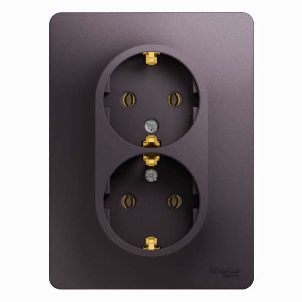 Розетка двойная Systeme Electric (ранее Schneider Electric) серии Glossa (в сборе, цвет сумеречный туман) с заземлением, без шторок подходит для сетей 250 В, на ток 16 А.- Заземляющий контакт обеспечивает дополнительную защиту от удара электрическим током. При наличии заземления электрический потенциал уходит в землю, защищая человека.