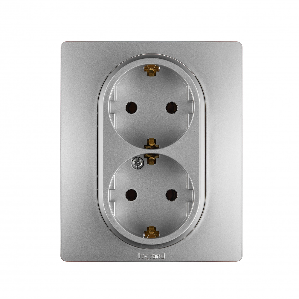 Legrand ETIKA Алюм. Роз. 2-ая c з/к без з/ш 16А мех. 1/10