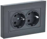Розетка 2-местная с заземлением с защитными шторками 16А в сборе графит IEK BRITE 1/100