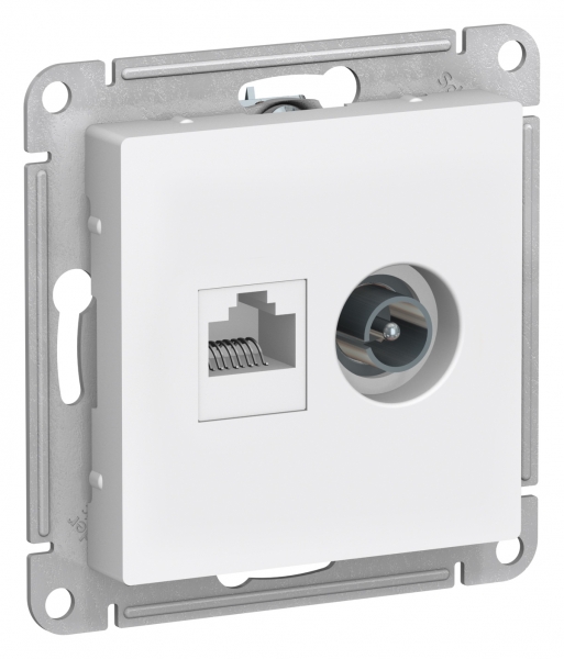 Механизм Systeme Electric (ранее Schneider Electric) серии AtlasDesign в цвете белый двойной розетки разъёмами RJ45 категории 5е и TV предназначен для удобного и быстрого подключения вашего компьютера и телевизора к соответствующим сетям. Пластик с ионами серебра в белом цвете обеспечивает антибактериальный эффект. Лицевые детали из качественного ABS-пластика, устойчивого к царапинам и УФ-излучению. Усиленные прямые монтажные лапки для лучшей фиксации механизма в монтажной коробке.