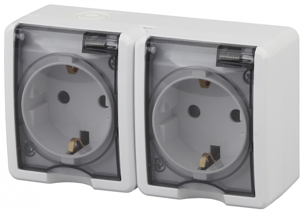 Розетка двойная IP54 серии Эра Эксперт открытой установки цвет белый 11-2403-01. Номинальные характеристики 16А 250В. Устройство выполнено из качественного поликарбоната, оснащёно уникальными винтовыми клеммами ЭКСПЕРТ для максимально качественного зажима кабеля в механизме.