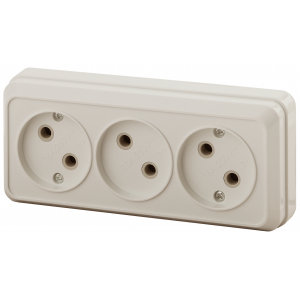 Розетка тройная 3-я серии Intro Quadro открытой установки цвет слоновая кость 2-205-02. Номинальные характеристики 16А 250В. Розетка выполнена из термопласта, стали и латуни, оснащёна винтовыми зажимами.