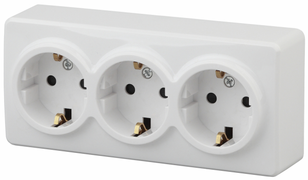 Розетка тройная 3-я серии Эра Эксперт открытой установки цвет белый 11-2208-01. Номинальные характеристики 16А 250В. Устройство выполнено из качественного поликарбоната, оснащёно уникальными винтовыми клеммами ЭКСПЕРТ для максимально качественного зажима кабеля в механизме.