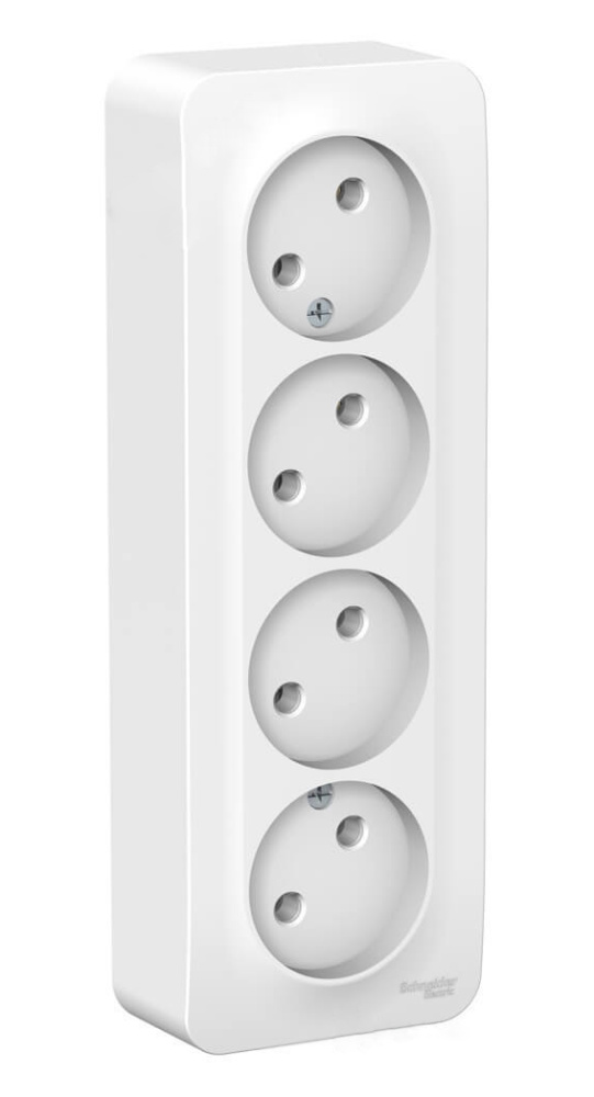 Розетка Systeme Electric (ранее Schneider Electric) BLANCA (белый, открытой установки) четырехместная, без шторок и заземления, с изолирующей пластиной предназначена для сетей до 250В, на ток до 16А. четырехместная розетка позволяет подключить четыре устройства в одном месте. Она изготовлена из ABS-пластика, проста в установке и удобна в применении.