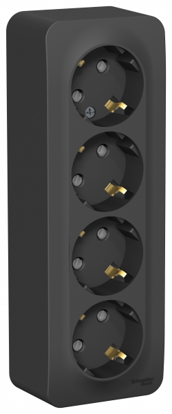 Розетка Systeme Electric (ранее Schneider Electric) BLANCA (антрацит, открытой установки) четырехместная, с заземлением, шторками и изолирующей пластиной предназначена для сетей до 250В, на ток до 16А. Четырехместная розетка позволяет подключить четыре устройства в одном месте. Шторки и заземление обеспечивают дополнительную безопасность. Она изготовлена из ABS-пластика, проста в установке и удобна в применении.