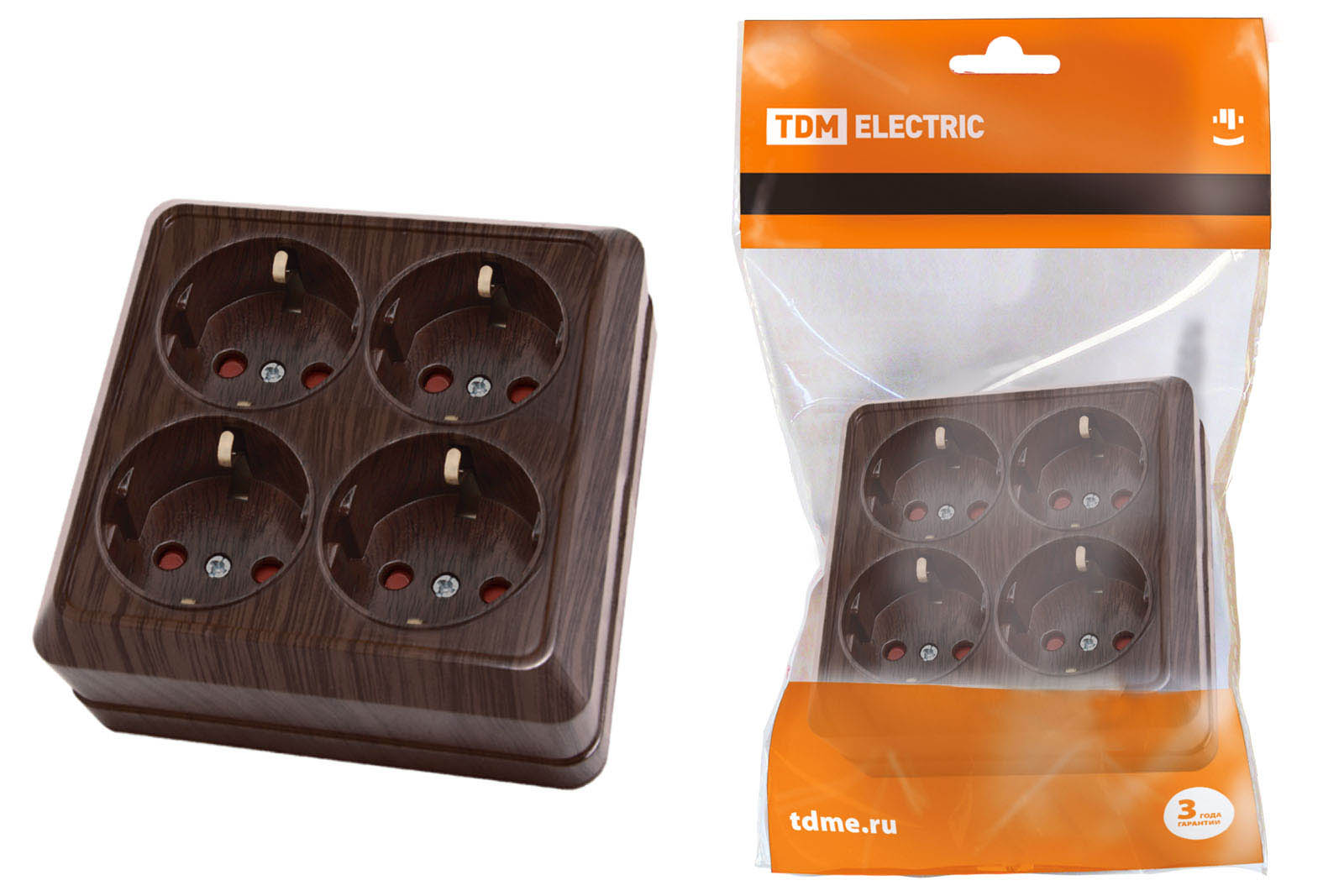 Розетка 4-местная 2П+3 IP20 16A открытой установки со шторками букTDM "Ладога"