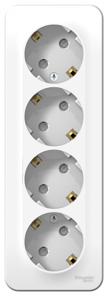Розетка Systeme Electric (ранее Schneider Electric) BLANCA (белый, открытой установки) четырехместная, с заземлением, шторками и изолирующей пластиной предназначена для сетей до 250В, на ток до 16А. Четырехместная розетка позволяет подключить четыре устройства в одном месте. Шторки и заземление обеспечивают дополнительную безопасность. Она изготовлена из ABS-пластика, проста в установке и удобна в применении.