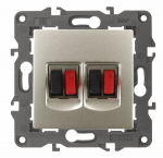 Розетка двойная аудио стерео серии Эра Elegance цвет шампань 14-3112-04. Рамки приобретаются отдельно. Рамки Эра Elegance ПЛАСТИК: 1 пост 14-5001-хх, 2 поста 14-5002-хх, 3 поста 14-5003-хх, 4 поста 14-5004-хх, 5 постов 14-5005-хх; СТЕКЛО: 1 пост 14-5101-хх, 2 поста 14-5102-хх, 3 поста 14-5103-хх, 4 поста 14-5104-хх; МЕТАЛЛ: 1 пост 14-5201-хх, 2 поста 14-5202-хх, 3 поста 14-5203-хх, 4 поста 14-5204-хх; ДЕРЕВО: 1 пост 14-5301-хх, 2 поста 14-5302-хх, 3 поста 14-5303-хх, 4 поста 14-5304-хх (хх - код цвета: 00-прозрачный, 01-белый, белёный дуб, 02-слоновая кость, 03-алюминий, 04-шампань, 05-чёрный, чёрное дерево, 07-ясень, 09-дуб, 10-венге, 11-клён, 14-медь, 21-жёлтый, 22-оранжевый, 23-красный, 25-бордо, 26-лайм, 27-зелёный, 28-голубой, 29-синий, 30-розовый, 31-мокко, 32-серый, 41-сталь, 42-титан).