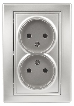 Розетка двойная 2-я серии Intro Plano скрытой установки цвет алюминий 1-204-03. Номинальные характеристики 16А 250В. Розетка выполнена из керамики, укомплектована одноместной рамкой, оснащена винтовыми клеммами. Клеммы с двумя отверстиями позволяют соединять соседние розетки шлейфом. Установка в подрозетник производится как на монтажные лапки, так и на винты.