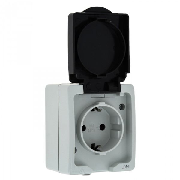 Розетка EKF Венеция 1-мест. в сборе с корпусом с З/К откр. уст-ки16А 230В со шторками с крышкой IP54 серый