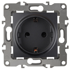 Розетка 2P+E Schuko, 16АХ-250В, без м.лапок, Эра12, антрацит
