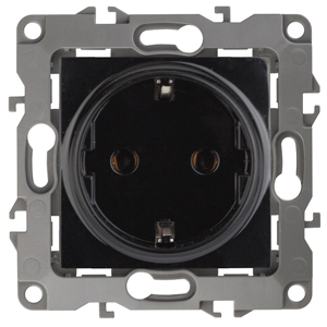 Розетка 2P+E Schuko, 16АХ-250В, без м.лапок, Эра12, чёрный