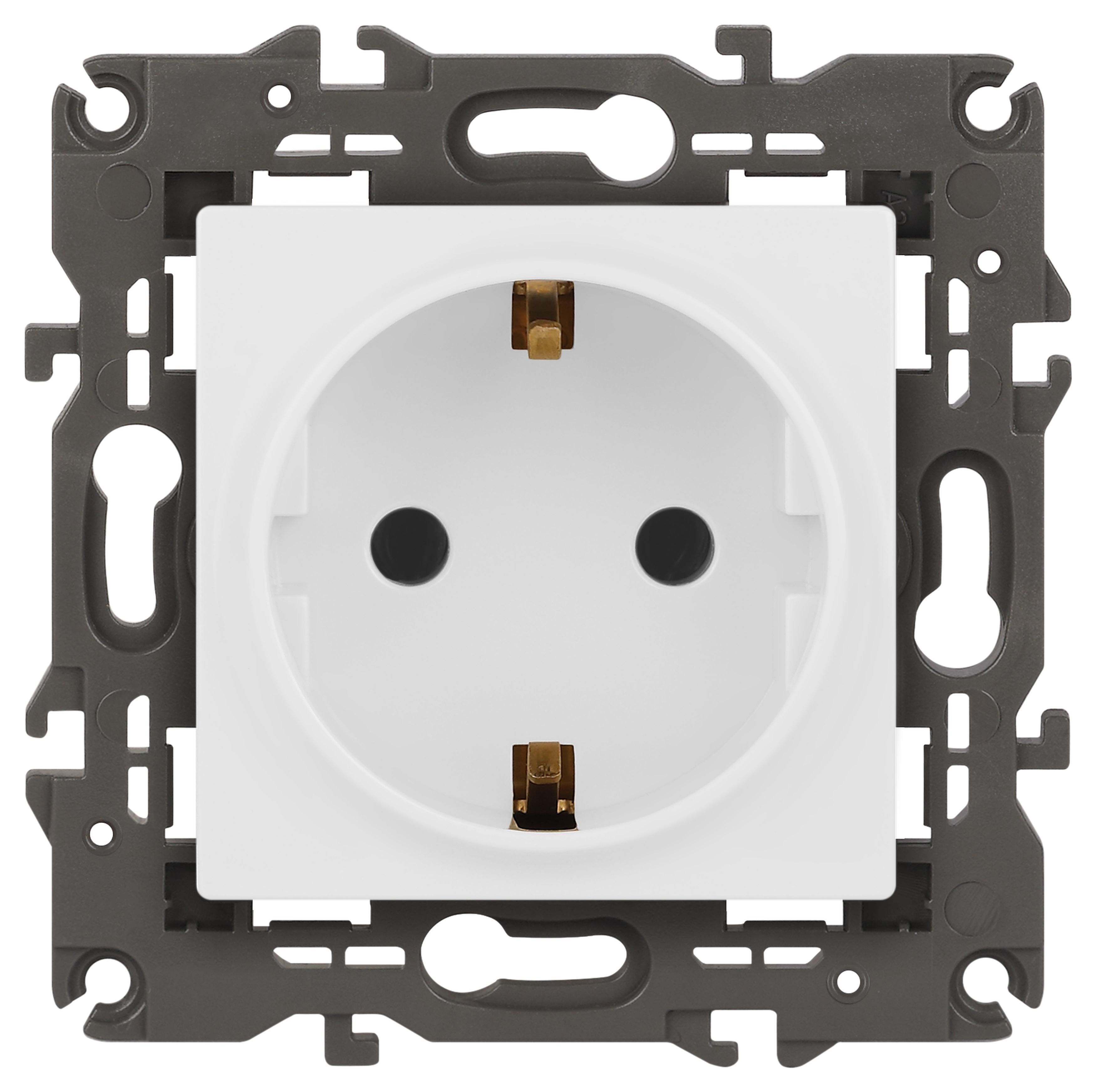Розетка с заземлением серии Эра Elegance цвет белый матовый 14-2101-01М. Характеристики 16А 250В. Оснащена автоматическими клеммами для надёжной фиксации жил кабеля в механизме. Рамки приобретаются отдельно.