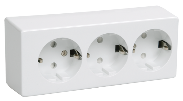 Розетка IEK БРИКС 3-мест. в сборе с корпусом с З/К откр. уст-ки16А 250В со шторками IP20 белый