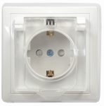 Розетка 1-мест. мех-м с накладкой с З/К скр. уст-ки16А 250В со шторками с крышкой IP44 бел.IEK КВАРТ