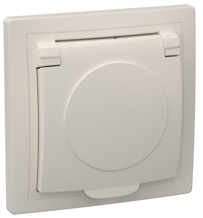 Розетка IEK КВАРТА 1-мест. моноблок с рамкой с З/К скр. уст-ки16А 250В с крышкой IP20 кремовый