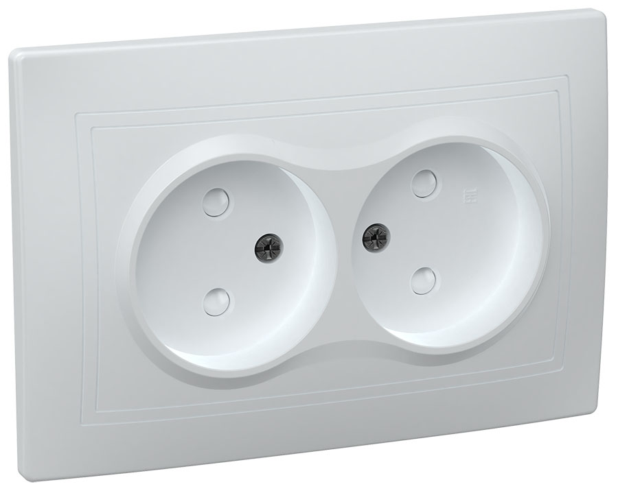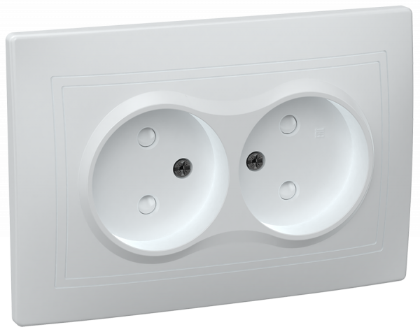 Розетка IEK КВАРТА 2-мест. моноблок с рамкой без З/К скр. уст-ки10А 250В со шторками IP20 белый