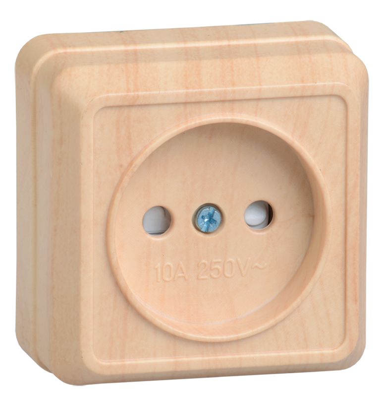 Розетка IEK ОКТАВА 1-мест. в сборе с корпусом без З/К откр. уст-ки10А 250В со шторками IP20 дерево