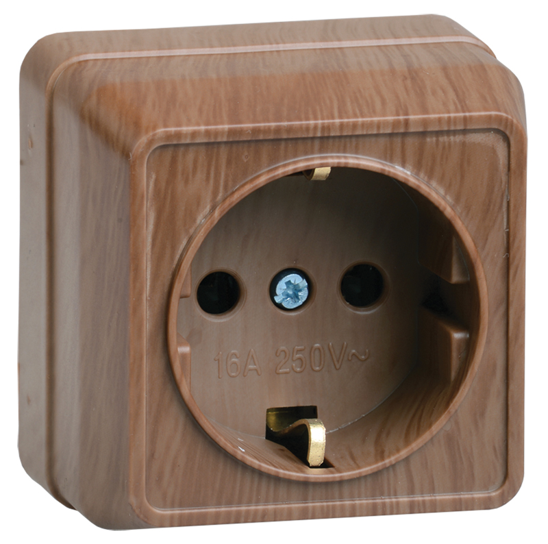 Розетка IEK ОКТАВА 1-мест. в сборе с корпусом с З/К откр. уст-ки16А 250В IP20 дерево