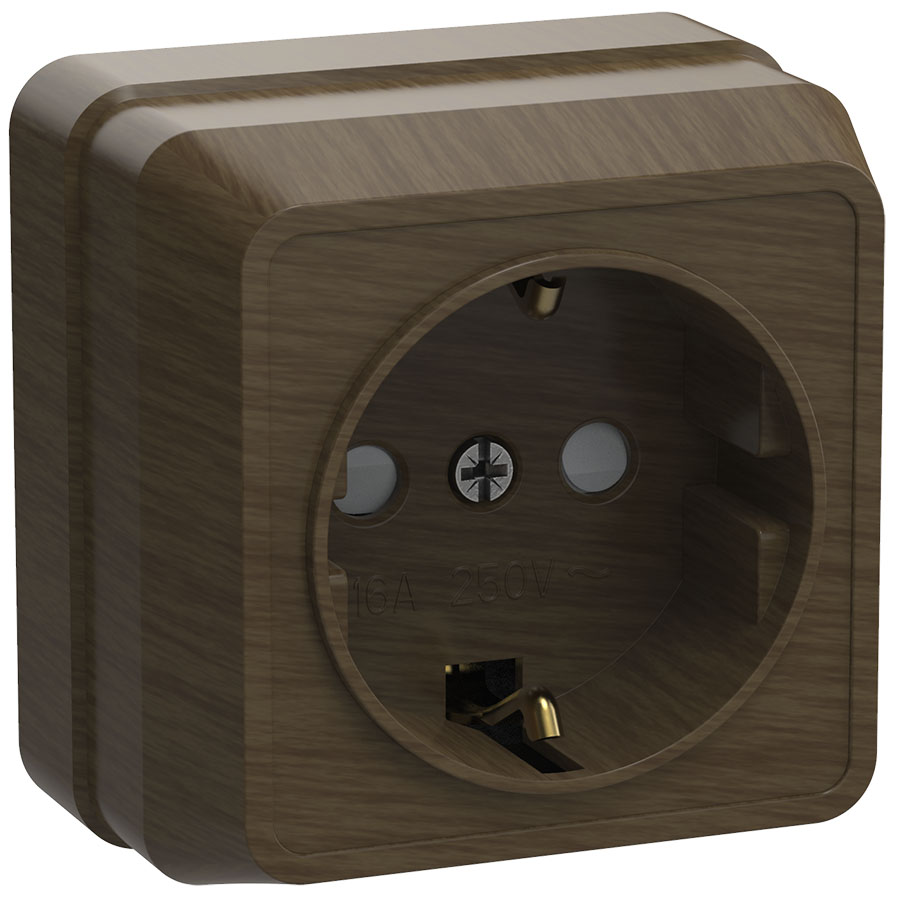 Розетка IEK ОКТАВА 1-мест. в сборе с корпусом с З/К откр. уст-ки16А 250В со шторками IP20 дерево ERO14-K04-16-DC