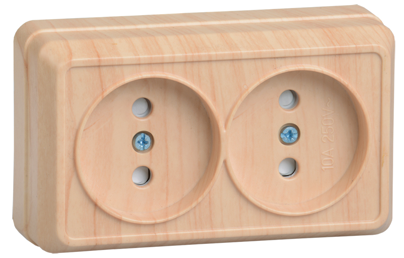 Розетка IEK ОКТАВА 2-мест. в сборе с корпусом без З/К откр. уст-ки10А 250В со шторками IP20 дерево ERO23-K03-10-DC