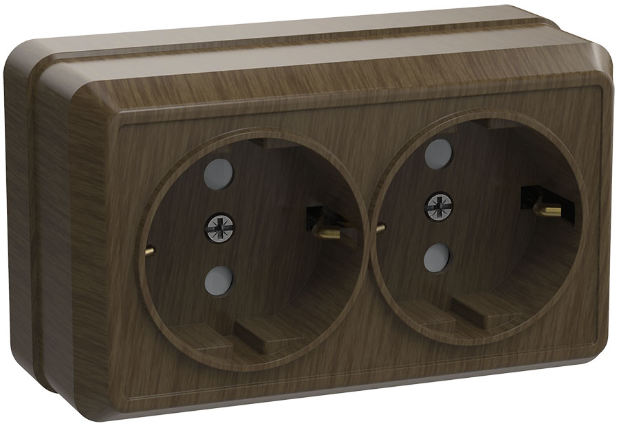 Розетка IEK ОКТАВА 2-мест. в сборе с корпусом с З/К откр. уст-ки16А 250В IP20 дерево